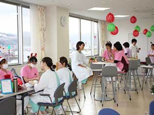 12月20日(木)・21日(金)の2日間、職員を対象として看護部ワークライフバランス推進委員会が「クリスマスイベント」を開催。今年は、みゆきホールラウンジを会場にお昼時間を活用し、手作りマスコットのバザー、カフェスペース、ハンドマッサージ、フットケアコーナー、癒しスペース等が設けられ、多くの職員が心と体をリフレッシュする時間を過ごしました。