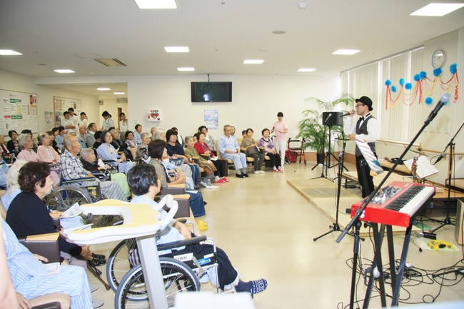 9月21日(土)山形市出身のタップダンサー阿部洋史さんによるタップダンスコンサートが、本館1階受付前ホールで開催されました。接遇改善委員会が毎年企画している音楽イベントで、入院中の患者様やご家族の他、職員や地域の皆様方100名以上が集まって下さいました。当日は阿部さんの他に、タップダンサー、ギター、パーカッション、ピアノ演奏の皆さん6名が素晴らしいタップダンスや歌・演奏を披露、会場は大きな拍子と笑顔であふれました。
