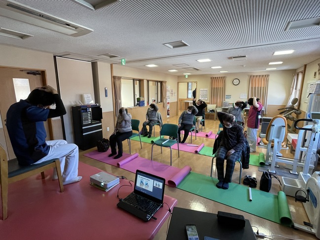 1月21日(木)、28日(木)の2回にわたり、南館クリニックで「健康教室」を開催しました。 コロナ禍での運動機会の減少、心身機能の低下が懸念されている中、地域の皆様に少しでも運動する場所を提供出来ればという思いから「健康教室」を開催しております。 先月に引き続き、南館地区を中心とした地域住民の方を対象に、各回5名の方が参加して下さいました。今回は「肩こり改善のために」というテーマで、説明と運動を行いました。肩こりの改善には、1、肩まわりの筋肉をやわらかくすることと、2、肩甲骨の位置を「正しい位置」に修正することが重要であることをお伝えしています。また、普段の姿勢やからだの使い方によっても肩こりに繋がるケースが少なくありません。自宅で簡単に出来る運動メニューも紹介し、実際に運動することで肩まわりの筋肉が柔らかくなり、からだが温まることを実感して頂くことができました。後半では、「からだのお悩み相談」の時間を設け、専門的なアドバイスをさせて頂きました。 「健康教室」を通して地域の皆様の健康増進のサポートを継続していければと思います。 |